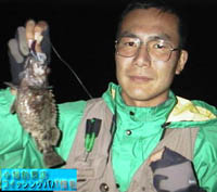 港内では久々のBIGサイズ! 竹内さん本人も自己最高サイズ! 下の5匹はミニミニハゼ! |