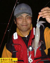 小樽フイッシングパパの釣り情報です。 詳しい情報は当店まで! PM9時30分〜AM1時頃までの釣果です 横風の強風の中、エギングにはつらい釣行となりました。 9時半になってから、餌のウキ釣りの方達がポツポツ釣れはじめ、4ハイくらい上がりましたでしょうか。 餌で釣れて、エギで釣れんハズがない… 高島でのヤリイカ爆釣の経験から、絶対の自信がある、エギング。 数日前にJINさんがここで、イカを釣りました。 RH JIN「マダムね、小娘と同じ釣り方(俺はね)カウントは20〜30。ただ巻、時折ストップカウント5〜10。の繰り返し。頑張れ〜!!」 その通りに実行しました。セコイ事にレッドヘッド3.0とそっくりそのまま使いました。 まもなく、エギが上がってくるかしらという水面近くでモワっとコンブのような重さの感触がありました。 ぷしゅー。ぷしゅー。 こ、この水音は…!!!! 岸壁に上げるまではわかりません。 暗闇の中、目が悪いわたしには、それがゴミなのか、イカなのか、本当に判断がつきませんでした。 岸壁に物体Xが無事着地…震える手でキャップライトを付けます。 動いています。生き物です。これは確実に… 「イ、イカだわ…ッ!」 やりました!エギングでイカGETです! ヤマシタ万歳!ダイワロッド万歳!ダイワリール万歳! GT−R万歳!ちはるさん万歳!!! マメイカだったのですがね…。 しかも子持ち。産卵に寄っている所で、食って来たんですかね? その後、かしさんも「水面近くで来たのなら、サイズを落としてみた」 と、2.0のこれまたレッドヘッドでマイカGET! テクニシャンですね。 かしさんのマイカ! 2.0レッドヘッドでGET! |