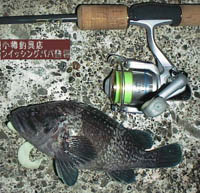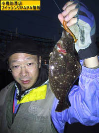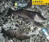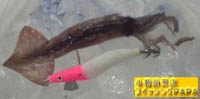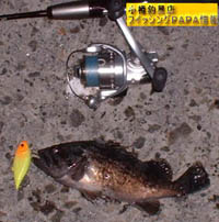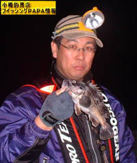 小樽フイッシングパパの釣り情報です。 詳しい情報は当店まで! 6月5日 岩内港にて PM6:20〜PM8:50 <おかっちさん情報> 夕マズメに岩内港フェリー埠頭外防波堤へヒラメ狙いで足を運んだ。 ワームをセットし外海側へ向かってキャストを繰り返すが、一向に当りもなく、あっという間に真っ暗になってしまった。。。 今日もヒラメは来ないのね、、、と思いながらソイでも釣って帰ろうと思い、ソイのポイントへ移動した。 PM8:00頃でした。 11ftロッドにパワーシャッド3インチをつけてソイのポイントにキャストしたら、1投目からソイのバイトが多数ありフッキングに成功! これはチャンスと思い、練習中のベイトタックルに変更し、グラスミノーを付けてキャストを繰り返していた所、3〜4投目ぐらいに来ちゃいました!釣れちゃいました!! ベイトタックルで初めてのお魚GETだぜ〜(^ー^)Vいえ〜い! そうこうしている間に、ベイトリールのスプールと本体の隙間にラインが噛みこんでしまい使い物にならなくなってしまった(泣) このまま帰ろうかとも思ったが、試してみたいリグが1つある(ニヤッ) また11ftのロッドを出してきて、先日PAPAで買ったルアー。。。そうファーDEちゅ”である。これを付けてみた。 結果は、写真を見ての通り!良方のクロソイちゃんが釣れちゃいました。釣り方は、店でちはるさんに教えて貰った通りで、一旦底まで落として ピュッ・・・モワ〜・・・ピュッ・・・モワーと底を叩いていたら、バイトしてきましたよ。 結局本日は、クロソイ3匹釣って帰ってきました。 ----------------------------------- 参考までに、ふぁ〜でちゅ は、黒で1/4ozでした。 おかっちさん有難うございました! 待ってました!イエッス! やはり、釣って下さいましたね!!! ブラボーおかっちさん! みなさん、この姿を見て「なーんじゃこりゃ」と思われる商品ですので、こうして、どうじゃー!とお写真を頂けると当店でも「うらぁー!!」と教えられるので助かりました!本当にいつもありがとうごさいます!またの情報をお待ちしておリます! |