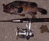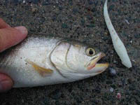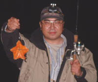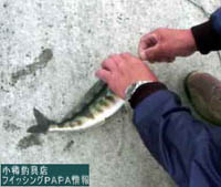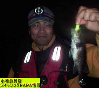 詳しい情報は当店まで! <おかっちさん情報> 泊漁港にて 6月15日 AM2:20(深夜) とりあえず、今年の1枚目GETです。 裏側に模様が入っているのでこれは放流物ですね。 サイズは、35cmジャスト!!という事でキープしました。 さて、釣れたルアーも公開します。 エコギアのスキップインザシェード(←あってるけ?)の1/8ozに グラスミノ−L カラー101 <←またそれかい(^_^;) |