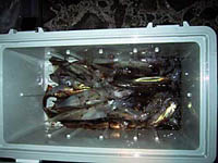 ![]() 沖漬け!はうぅう!! こーれが美味いんだ! 実は沖漬けの配合は独自のもので皆さんナイショとか。 コツは色々入れすぎないとの事です。 ![]() ヤマシタ「ササイカテーラー」使用。 えさの食いつくのが上か下か見極めてえさの装着位置を下の方に変えてみた所、付きが良くなった。 ![]() 素晴らしい! この釣果を見よ! 刺身、沖漬け、イカ飯!なんでもアリですな。 以上まことさん情報でした! いいなぁ。 |