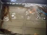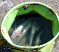 ![]() キープは10匹以下。サイズ良好のを持ってきました。 ![]() ぶくぶくでハゼは元気一杯。新鮮です。 ![]() ブクブクの管を通す穴をクーラーに自分で開けた。 |