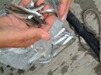 小樽フイッシングパパの釣り情報です。 詳しい情報は当店まで! チカ 8〜10cm 一人70〜3ケタ 小型だが数が釣れる スピードえさ付け器専用サビキで2〜2.5号の小さい針が良い。 PM2:00頃入れ食い。 北浜でのハゼ ハゼ 8、10cm主体で中には17cmの痩型のハゼが混じる。 明日のハゼ釣り大会、皆さん頑張ってください。 |